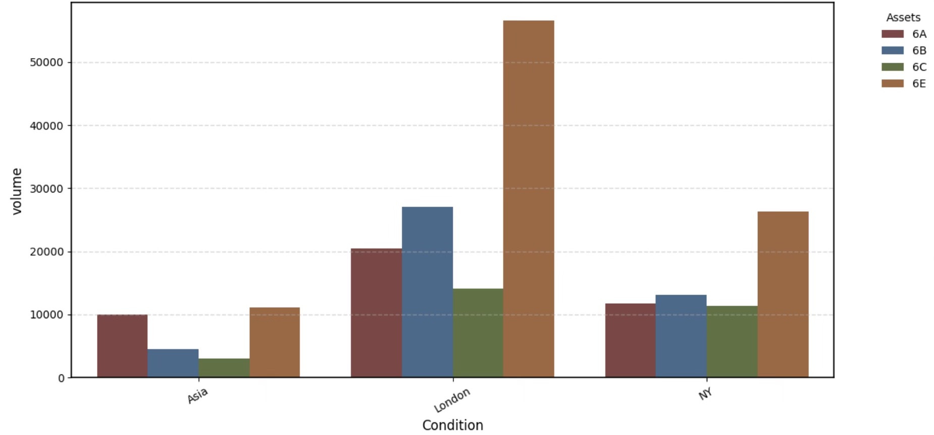 The chart below shows the median trading volume across the three main sessions: Asia, London, and New York.