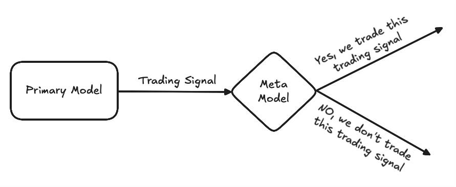 Meta model: takes every signal from the primary model and predicts whether it’s actually worth executing or not.