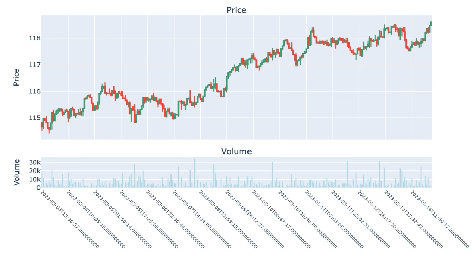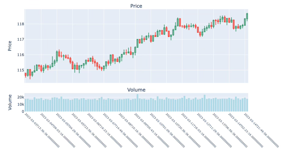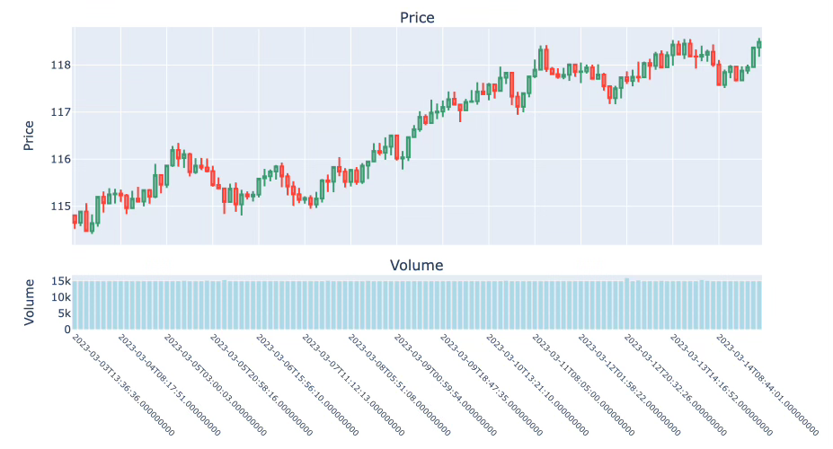 Volume bars push the logic of tick bars further. Instead of counting trades (ticks), they aggregate based on the cumulative traded volume.